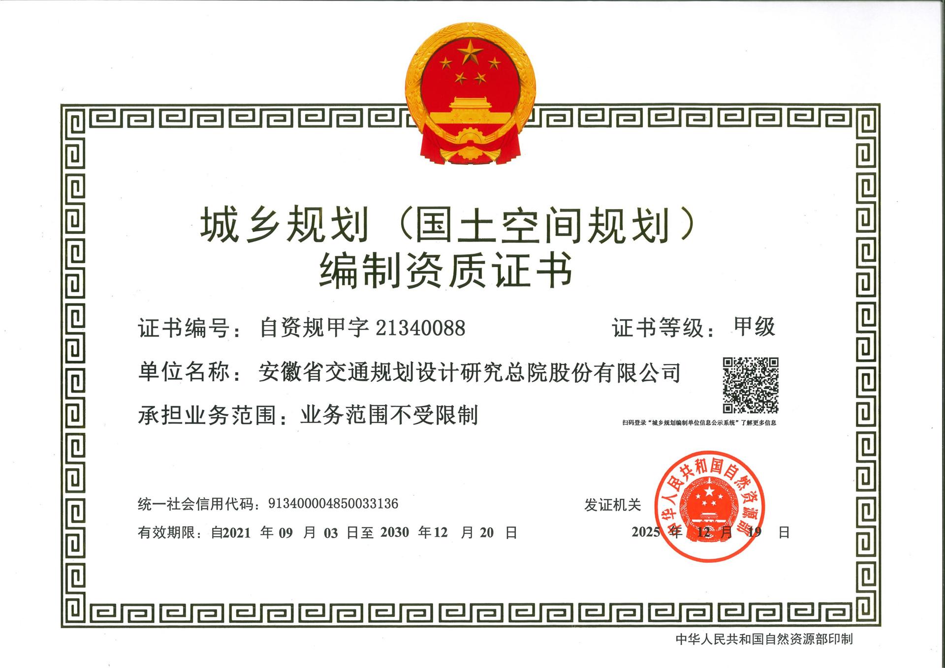 • 设计总院城乡规划编制甲级资质获自然资源部核准延续 2025-12-30